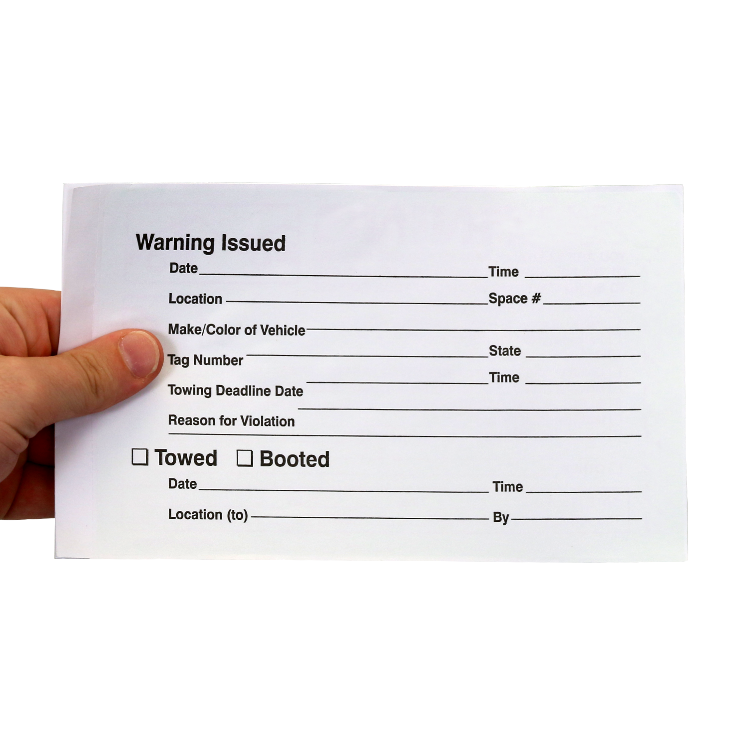 - Parking violation stickers are sold in packs or a book of 50 labels.