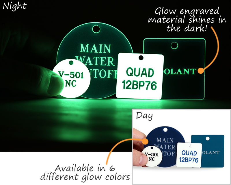 We offer a range of engraved plastic valve tags. These are available in six assorted colors: red, green, blue, yellow, black, and white. You may choose our sequentially numbered plastic valve tags or go for custom valve tags to add your own text. Our tags come in three resilient grades of plastic material – indoor, outdoor and glow in the dark plastic.