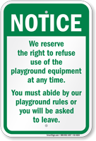 Every kid is an amateur gymnast. The playground is fun, but make sure it's a safe place, too. Playground Equipment Rules Signs make sure kids are safe on swings, rides, trampolines, slides, fences, ladders, rims, and other equipment.