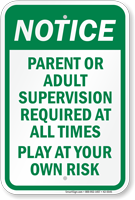 Prevent children from getting hurt or lost in the playgrounds with Parental Supervision Required Signs. These signs highlight parental or guardian’s responsibility and also save yourself from any kind of liability.