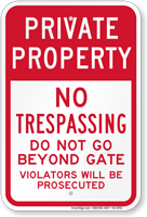 Private Property No Trespassing Signs