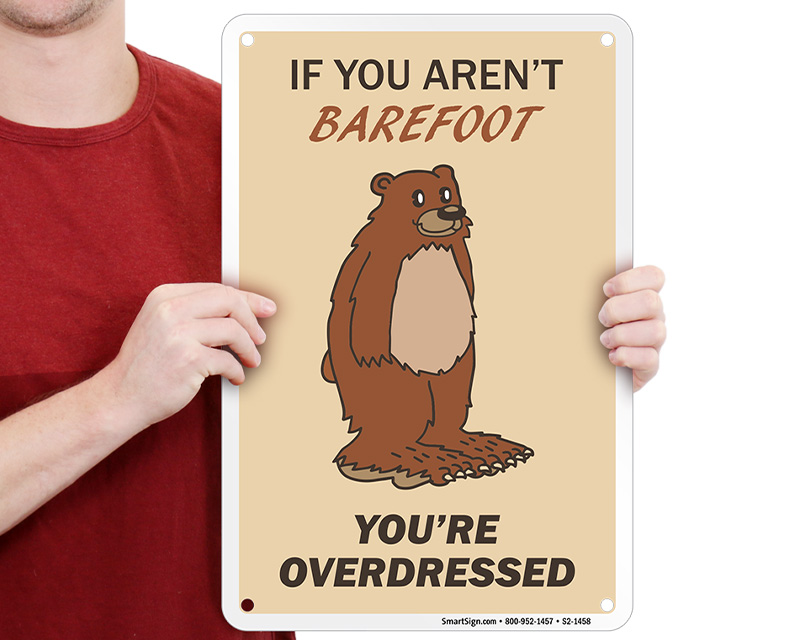 Cut-off jeans are prohibited because the frayed edges shed rapidly, clogging pumps. metal rivets on jeans can also scratch water slides or pool surfaces. You can include this specific warning on custom swimming pool signs.