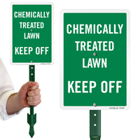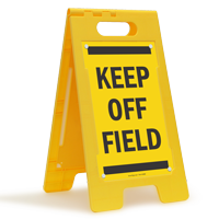 We have various temporary signage solutions that you can try. FloorBoss XL™ Free-Standing Sign folds flat for easy storage when not in use. This plastic stand has two sign panels with a “Keep Off Field” message for both sides. ConeBoss Keep Off Grass Sign fits onto the top of any traffic or safety cone. Even this sign can be temporarily placed until the grass is wet. These two signs are lightweight but if you’re looking for a heavy sign assembly, try our keep off grass sign and post kit with iron sign base, LawnBoss Signs (with 3 feet stake), and GardenBoss™ Statement Plaque with stake.