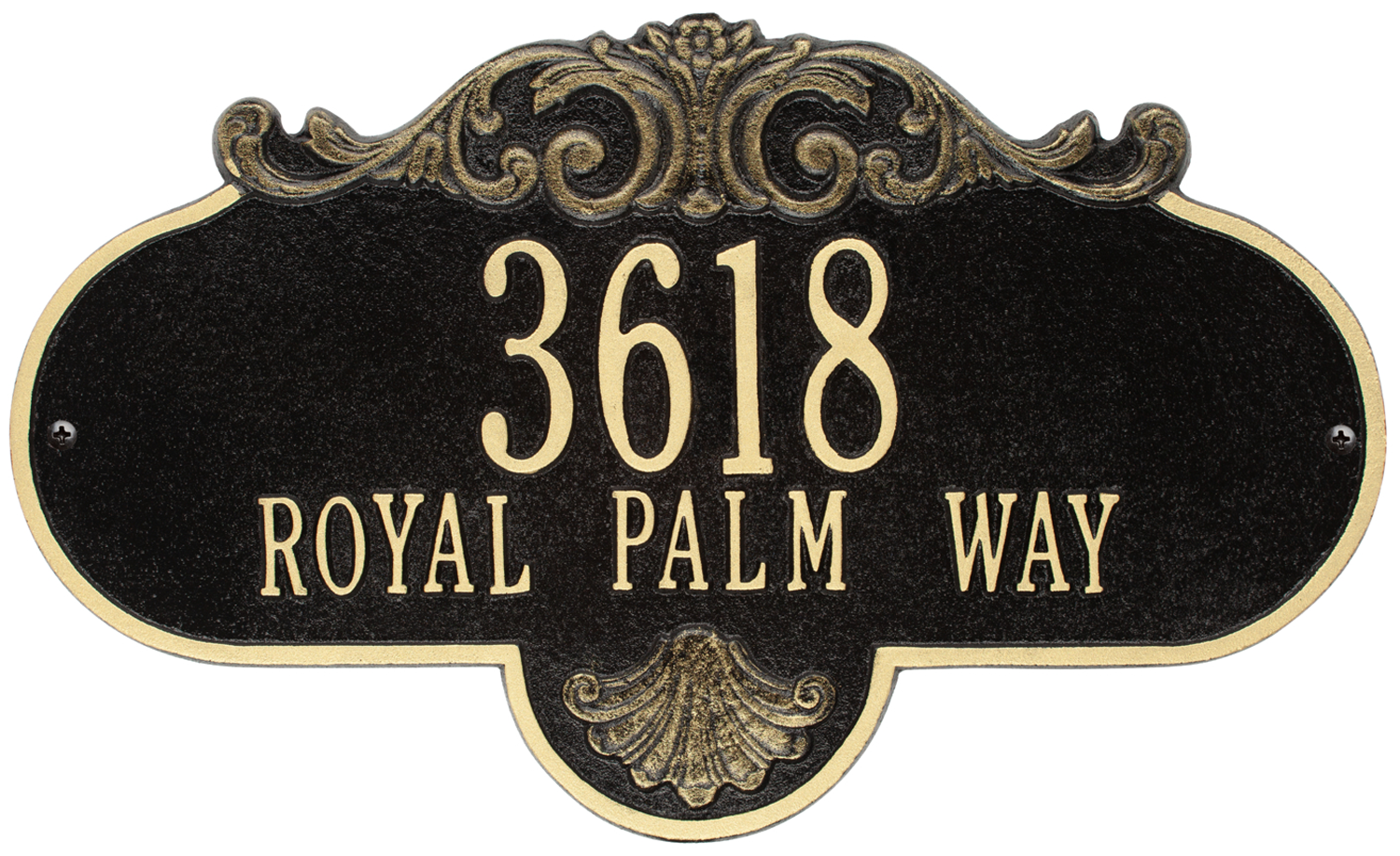The Rochelle Grande Wall Two Lines Address Plaque ornately announces your address with a finely crafted scroll pattern that is sure to stand out.