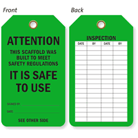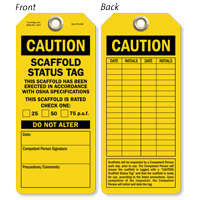 Both OSHA and the Department of Labor cite scaffolding problems as some of the most-frequent workplace safety violations. Scaffolding Inspection Tags track and maintain regular inspections.