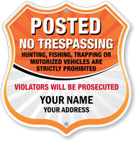 Safeguard your private property from unwanted trespassers, hunters, hikers, solicitors, skateboarders, campers, and even drones with our line of Shield Security Signs.