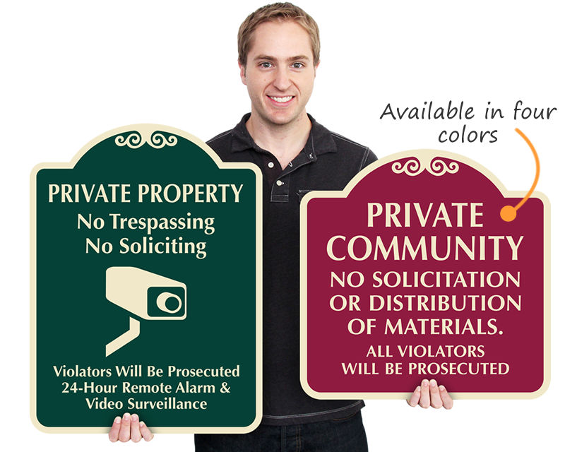Clearly announce your rules, direct visitors, and let everyone know about your surveillance and trespassing policies. Designer property signs stand out at your home or business.