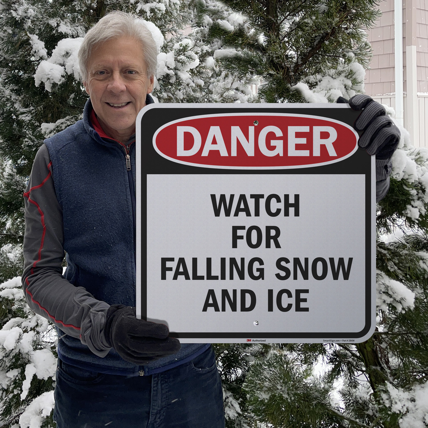 Post this Danger Watch for Falling Snow and Ice sign to remind everyone to be alert during snowfall, hailstorm, and other unfavorable weather conditions. 18" x 18" square sign with bold black legend is hard to miss.