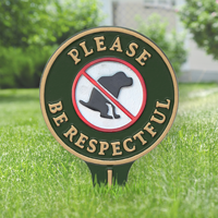 If you have to put up signs to remind people to be considerate of your property, this is the one. The saying gets the point across, it is not tacky looking, and the size is just right without being all in your face. I especially like that the stake is part of the unit so it avoids an additional order to secure it in the ground. My only hope is that they will hold up to the weather, but only time will tell. At this point, I am pleased with my purchase.