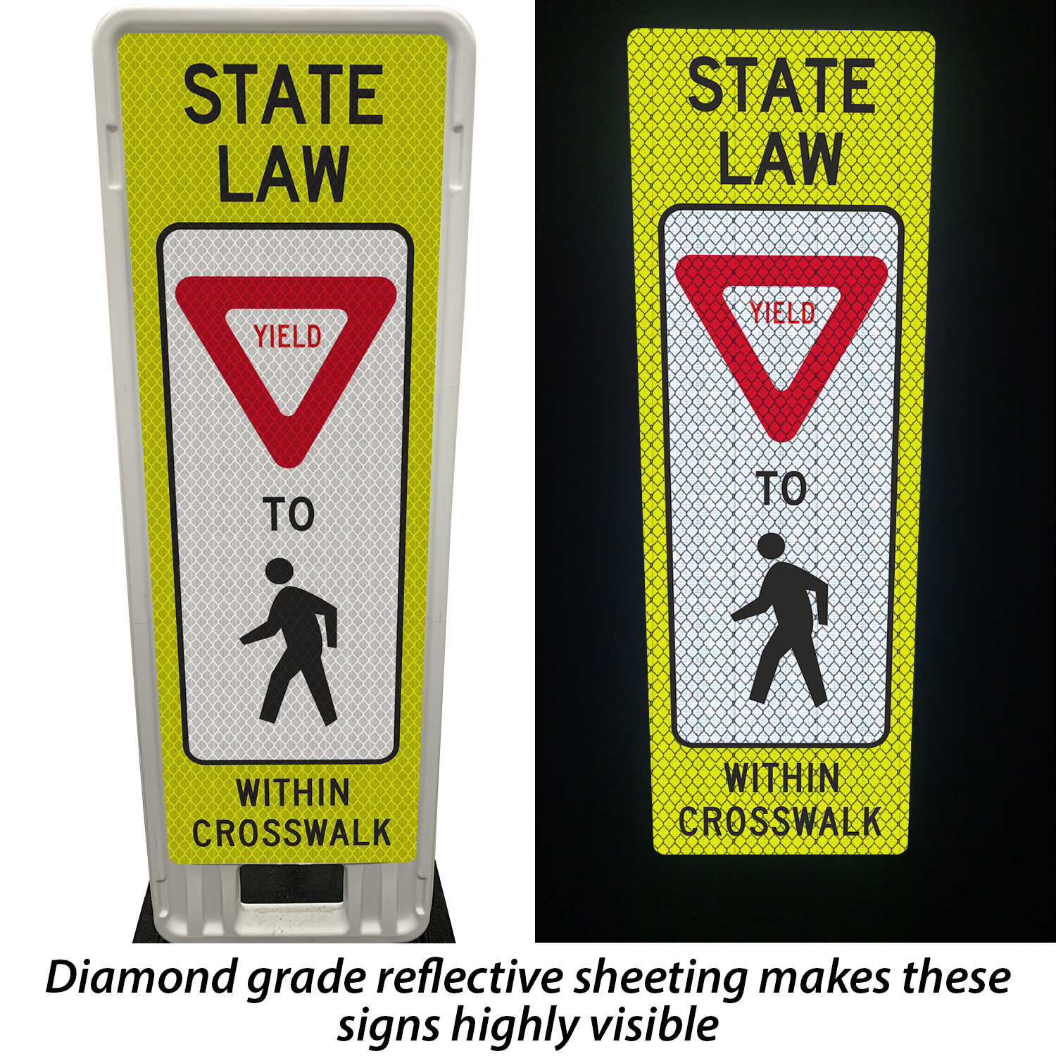 - Features 2 reflective 12”x36” plastic signs.