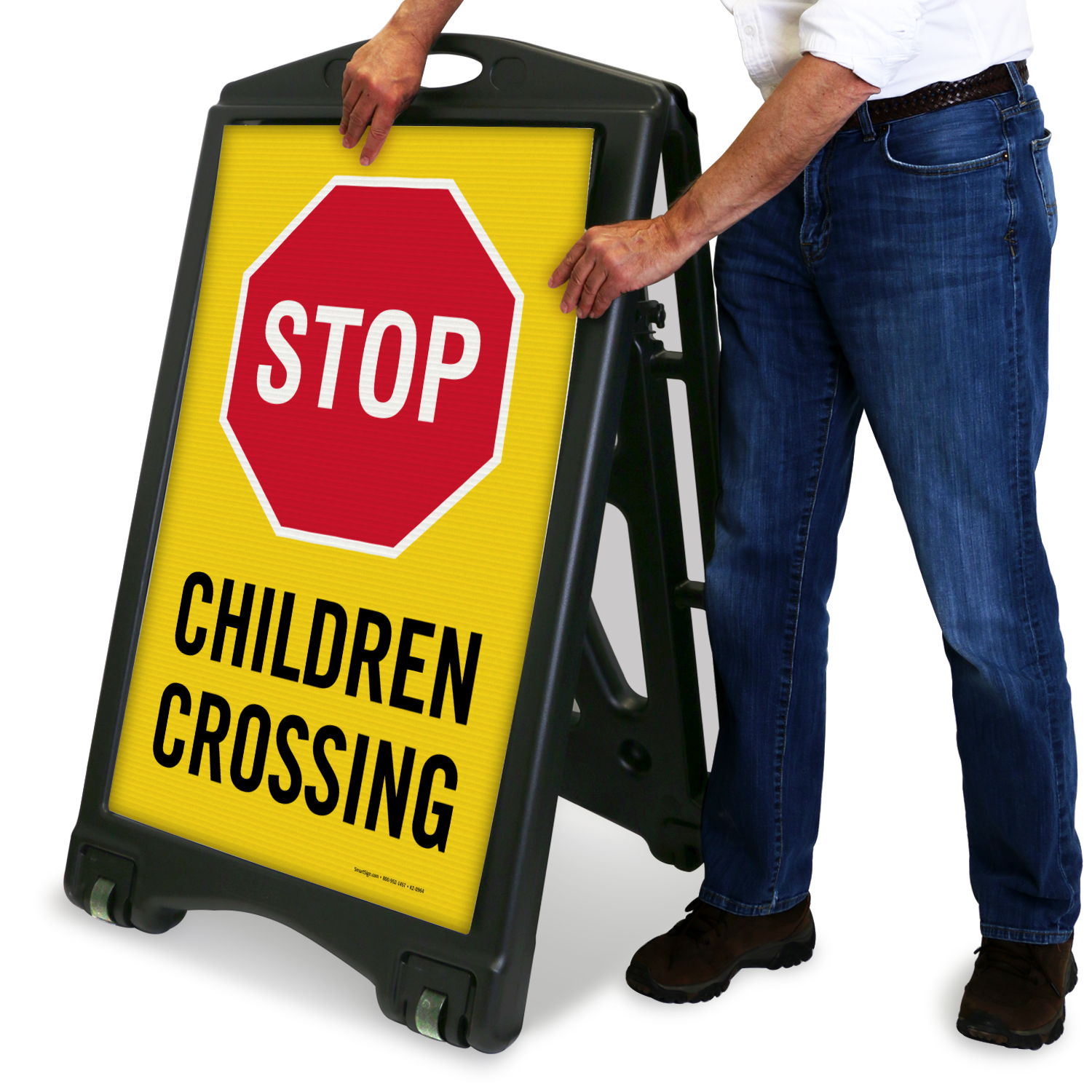 Regulate traffic movement during school in session, and in playgrounds with this portable A-frame sidewalk sign kit.