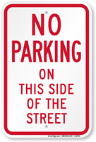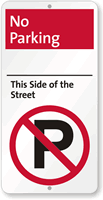 You can browse our complete collection of street parking signs including no parking on street signs, street sweeping signs, and timed parking restriction signs in standard aluminum and reflective finishes with same-day shipping, used by municipalities, HOAs, and property managers to regulate parking along public and private streets.