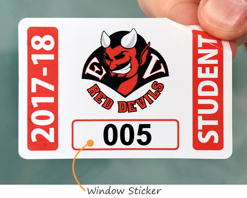 This depends on your needs. Parking stickers (decals) are ideal for year-long, single-vehicle use. Mirror hang tags are easily transferable between vehicles. We offer both custom and in-stock student parking passes to fit any school's policy.