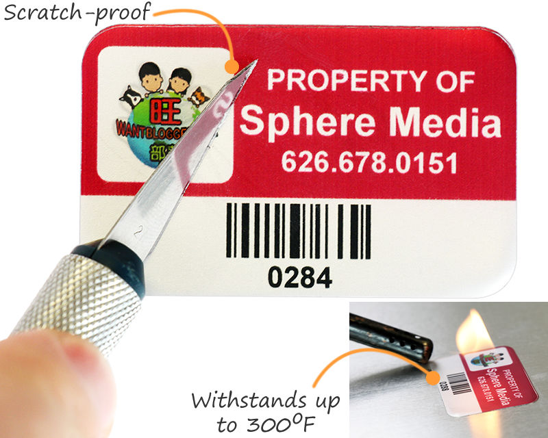 • Annealed aluminum offers superior conformability. Full color anodized print is sealed into the aluminum pores and cannot be worn off. • Security cuts prevent reuse. • Choice of 3M adhesives for plastic or metal surfaces. • Extreme weather, heat and chemical resistance. • Packaged on strips (usually from 8 - 12 labels per strip) More Material Details |
