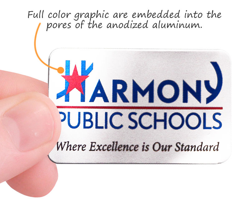 • Full color anodized print. Logos, text and numbers are embedded and sealed into the aluminum pores. • Extreme abrasion, chemical and weather resistant. • 100% aluminum with matte surface. • Choice of thick 3M adhesives. Sticks well to plastic or metal. • Packaged on strips (usually from 8 - 12 labels per strip) More Material Details |
