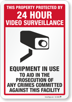 Smile! You're on camera. Our range of 24-hour surveillance signs let you protect your personal property from thieves, in vinyl or aluminum.