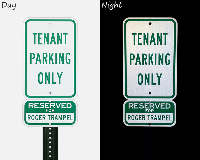 These are not cheap plastic signs. Our tenant parking signs are made from heavy-duty, rust-proof aluminum and 3M reflective sheeting. They are designed to last for years and meet MUTCD standards for quality and durability. See our material specs.
