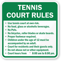 • • By posting Tennis Court Rules Signs, you can also make sure that proper attire is worn on the court at all times.