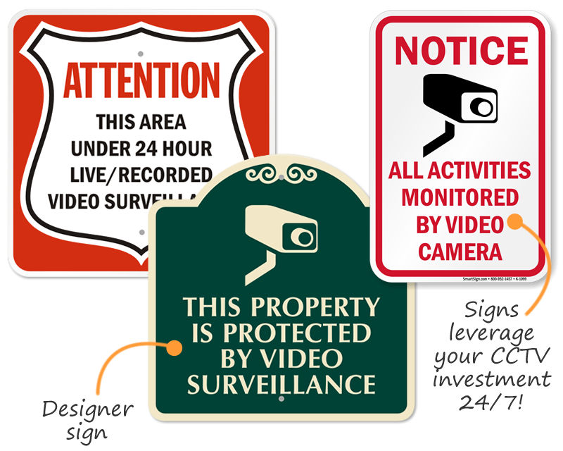 Think visitors are up to shenanigans on your property? Use video surveillance signs to remind employees and customers that you're keeping an eye on them. Shapes and designs to suit any location.
