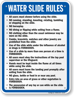 Don't think of these signs as fun blocks--think of them as techniques to help you have an even better slide! Enhance safety and fun with Water Slide Rules Signs!